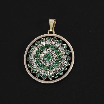 Antiker Anhänger mit Smaragden und Diamantrosen.
