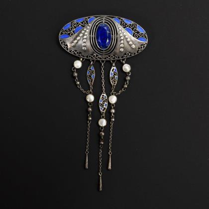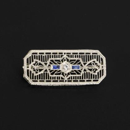 Kleine Art-déco-Brosche mit Saphiren.