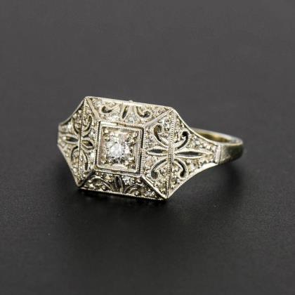 Art-déco-Ring mit Altschliff-Brillant und Diamantrosen.