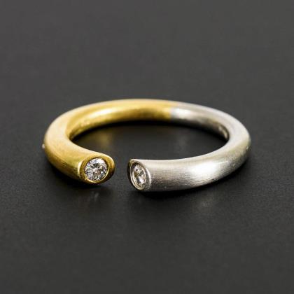 2-farbiger, offener schmaler Reif mit 2 kleinen, eingelassenen Brillanten