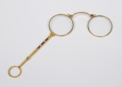 Gold-Lorgnette mit Diamanten und Rubinen.