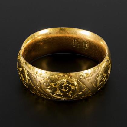Breiter Klappreif (Metall) mit schauseitigen Gravuren. Doppelstegverschluss