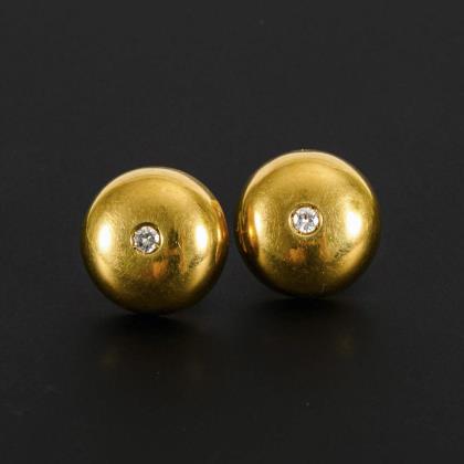 Halbkugel mit eingelassenem, kleinen Brillant, an Steckmechanik