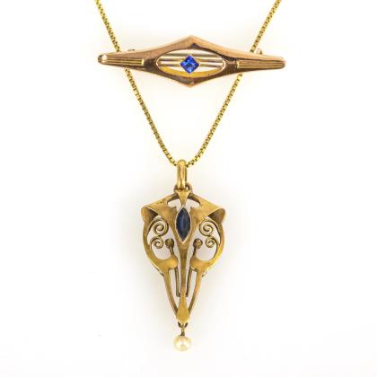 Jugendstil-Collier mit Abhängungen.