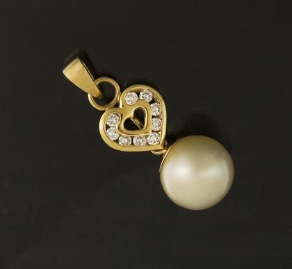 9 Brillanten circa 0.3 ct. 1 runde champagnerfarbene Südsee-Zuchtperle circa 13 mm als Abhängung. Punzen: Feingehalt