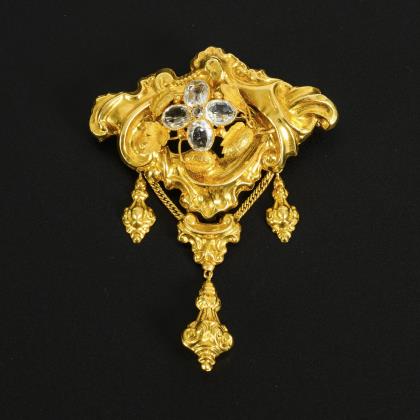 Gründerzeit Anhänger-Brosche mit Achatkamee.