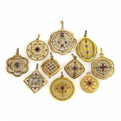 Konvolut Jugendstil-Anhänger um 1900.