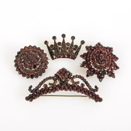 Historische Brosche mit Granat und Saatperlen.