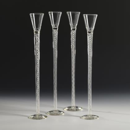 4 große Likörgläser mit Spiralstängeln. Josephinenhütte.