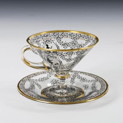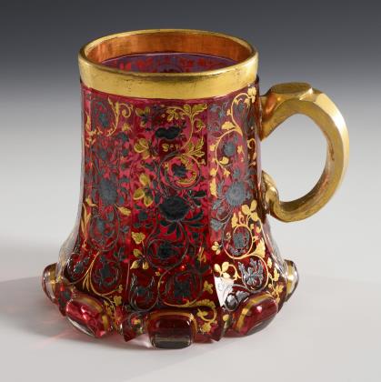 Krug mit Gold- und Silbermalerei. Harrach.