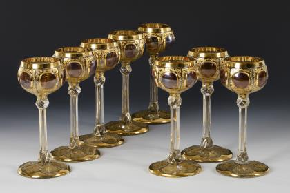 6 Prunkrömer mit Goldliniendekor. Josephinenhütte.