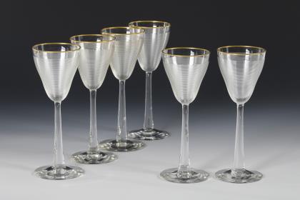 6 Jugendstil-Stängelgläser.