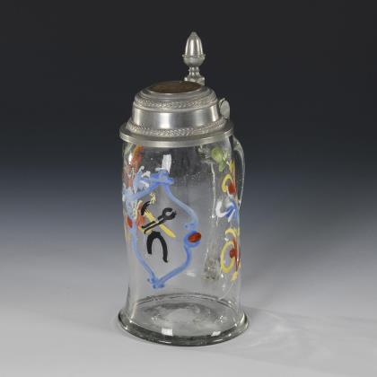 Bierkrug mit Emailmalerei