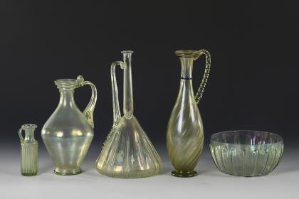 5 Repliken römischer Gläser. Ludwig Felmer Glas & Porcellanwaaren Handlung.