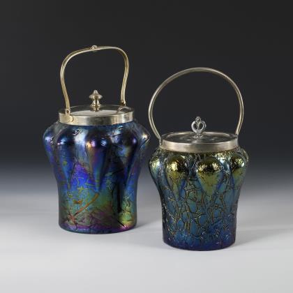 Jugendstil-Krug und -Keksdose mit Nickelmontierung.
