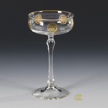 Jugendstil-Sektschale mit der "goldenen Rose". Theresienthal.