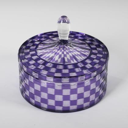 Zylinderdose mit Knaufdeckel und Würfelschliff