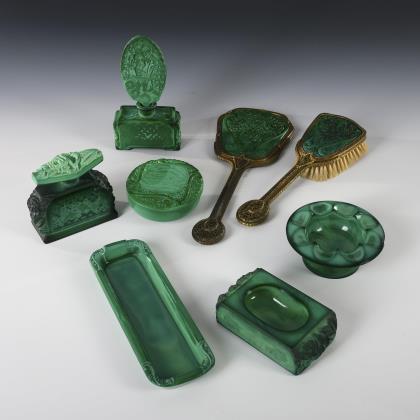 8 Teile Malachit-Glas. Schlevogt.