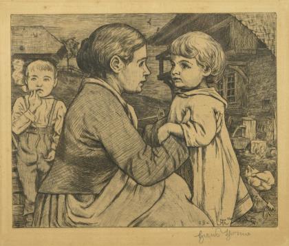 KOLLWITZ, Käthe (1867 - 1945). "2 schwatzende Frauen und zwei Kinder".