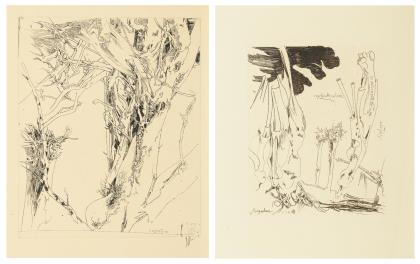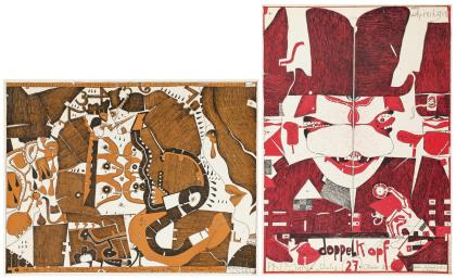 "Zweiter Laatzen Bilderbogen", Bleistiftsignatur, 1969, Auflage 1000 Exemplare. / "Gerlind Reinshagen doppelkopf", Handsigniert 1968, zwei hinterklebte Einrisse