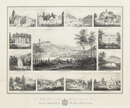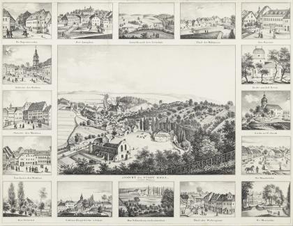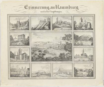 "Erinnerungen an Naumburg und seine Umgebungen", 13 Ansichten auf einem Blatt, graviert F. Walther