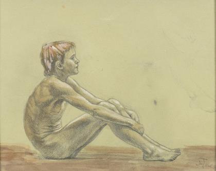 THOMA, Hans, zugschrieben. Sitzender Knabe.