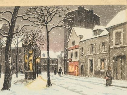 UNDEUTLICH SIGNIERT. Montmatre - Place du Tertre, im Winter.