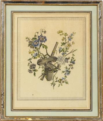 RANSON; VOYLARD. 5 kolorierte Raum-Dekorationen in alten Spiegelglas-Rahmen.