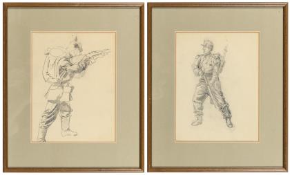 (FABER DU FAUR, Otto) (1828 - 1901). 2 Zeichnungen von Soldaten.