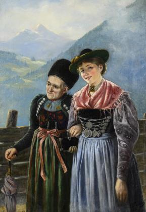 SCHÖNIAN, Alfred (1856 Frankfurt/Oder - nach 1936 München). Zwei Frauen in Tracht.