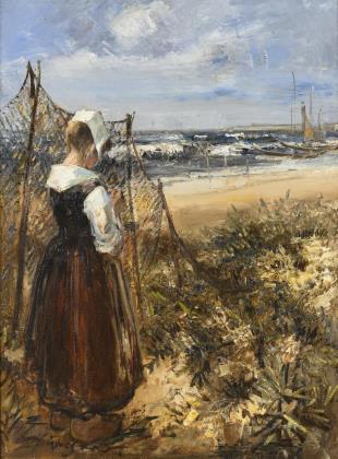WAGNER, Hansjörg (1930 Berlin - 2013 München). "Netzflickerin" - Kleine Holländerin am Strand.