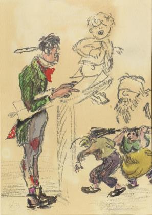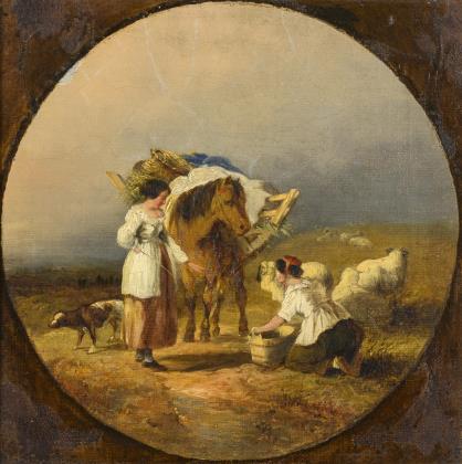 ZÜGEL, Heinrich Johann von (1850 Murrhardt - 1941 München). Skizze mit Bauern bei der Schafschur.
