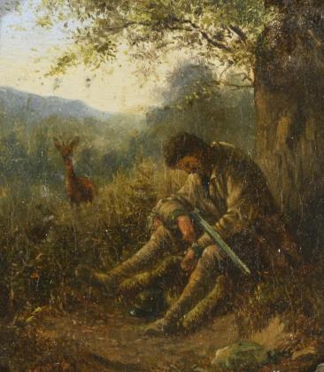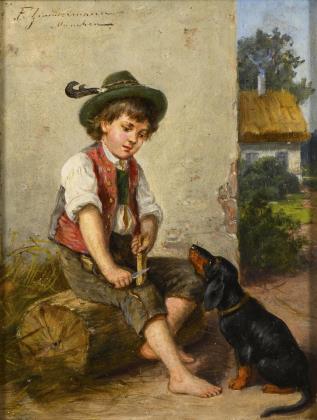 ZIMMERMANN, Friedrich August (1805 Roßwein - 1876 Dresden). Schnitzender Junge mit Dackel.