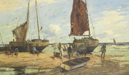 MOHR, Karl (1922 Düsseldorf - 2013). Fischersleute am Strand.