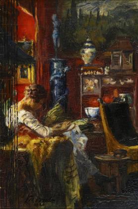 BREDT, Ferdinand Max (1860 Leipzig - 1921 Ruhpolding). Dame im Interieur.