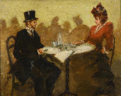 SCOPPETTA, Pietro (1863 Amalfi - 1920 Neapel). Im Café.
