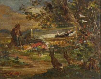 SCHLITT, Heinrich (1849 Biebrich-Mosbach - 1923 München). Schneewittchen im gläsernen Sarg.