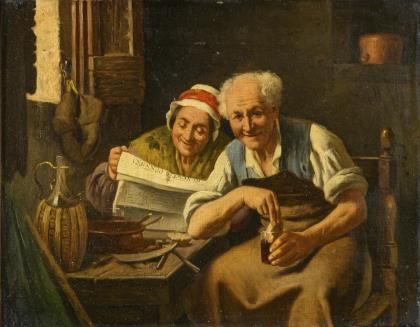 SCHLOMKA, Alfred. Genreszene mit Schusterpaar.