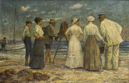 SÖRENSEN, Lauritz (1882 Aalborg - 1968). Impressionistische Szene mit Fotograf am Strand.
