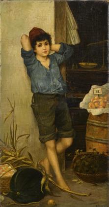 SCHEUERMANN, Willi (1885 Würzburg - nach 1959 Berlin). Knabe am Hauseingang.