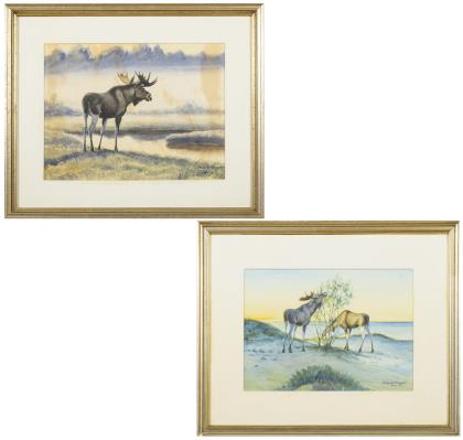 KALLMEYER, Hans (1882 Erfurt - 1961 Bayreuth). Zwei Bilder mit Elchen nahe dem Wasser.