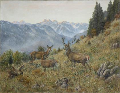 HAUG, Christian (* 1878 Talheim/Tübingen). Rotwild im Hochgebirge.
