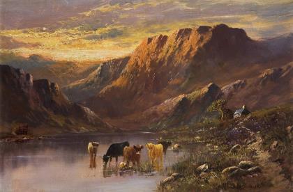 BRÉANSKI, Alfred de (1852 - 1928). Schottisches Hochland im Sonnenuntergang.