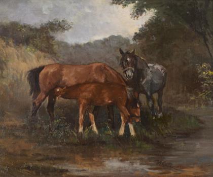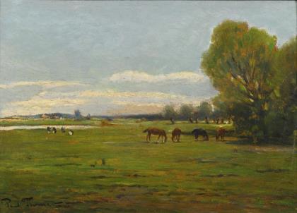 THOMAS, Paul (1868 Limoges - 1910). Weidende Pferde.