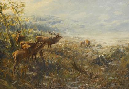 HOLZ, Albert (1884 Düsseldorf - 1954 ebd.). "Morgen in der Brunftzeit".