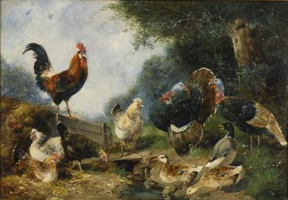 FINCK, Adele von (1879 Buenos Aires - 1943 Berlin). Bauernhof mit Hühnern und Ziegen.