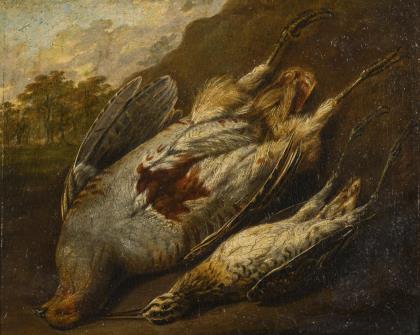 EICHLER, Reinhold Max (1872 Mutzschen/Sachsen - 1947 München). Jagdstillleben mit Beutevogel.