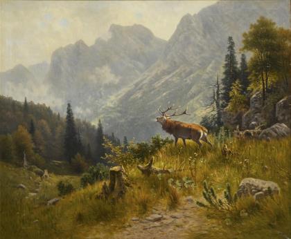 SKELL, Ludwig (1842 Obergünzburg - 1905 München). "Hirschbrunft im Linderhofertal".