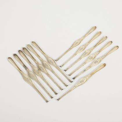 12 silberne Hummergabeln. Bremer Silberwarenfabrik.
