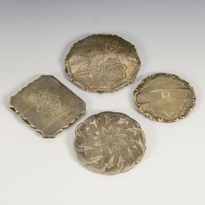 Fein graviert und guillochiert, alle mit Innenspiegel. 3x rund, 1x rechteckig